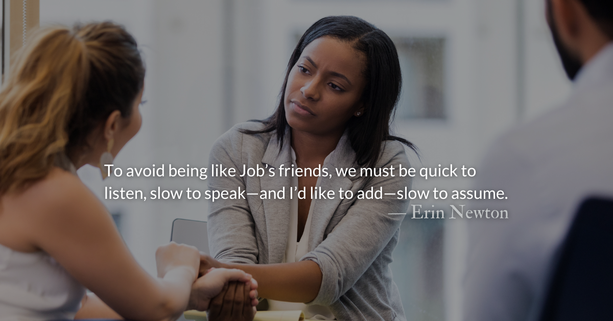 To avoid being like Job’s friends, we must be quick to listen, slow to speak—and I’d like to add—slow to assume.