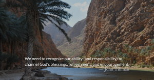 Links for today’s readings: Jan 6 Read: Job 6 Listen: (2:56) Read: John 6 Listen: (8:27) Scripture Focus: Job 6.14-21 14 “Anyone who withholds kindness from a friend forsakes the fear of the Almighty. 15 But my brothers are as undependable as intermittent streams, as the streams that overflow 16 when darkened by thawing ice … Continue reading Constant Streams