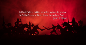 Scripture Focus: 2 Samuel 21.15-2215 Once again there was a battle between the Philistines and Israel. David went down with his men to fight against the Philistines, and he became exhausted. 16 And Ishbi-Benob, one of the descendants of Rapha, whose bronze spearhead weighed three hundred shekels and who was armed with a new sword, … Continue reading David’s First and Last Giants
