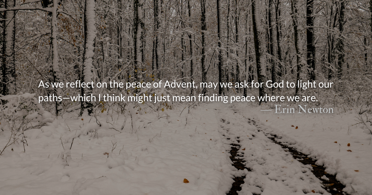 As we reflect on the peace of Advent, may we ask for God to light our paths—which I think might just mean finding peace where we are.