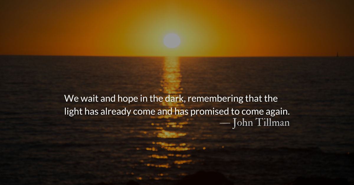 Like the psalmist, return to what God has spoken. The psalmist heard God from the sanctuary. Our sanctuary is in the words of Jesus. The promises we have in Jesus are already true and not yet fully manifested. In Advent, we wait and hope in the dark, remembering that the light has already come and has promised to come again.