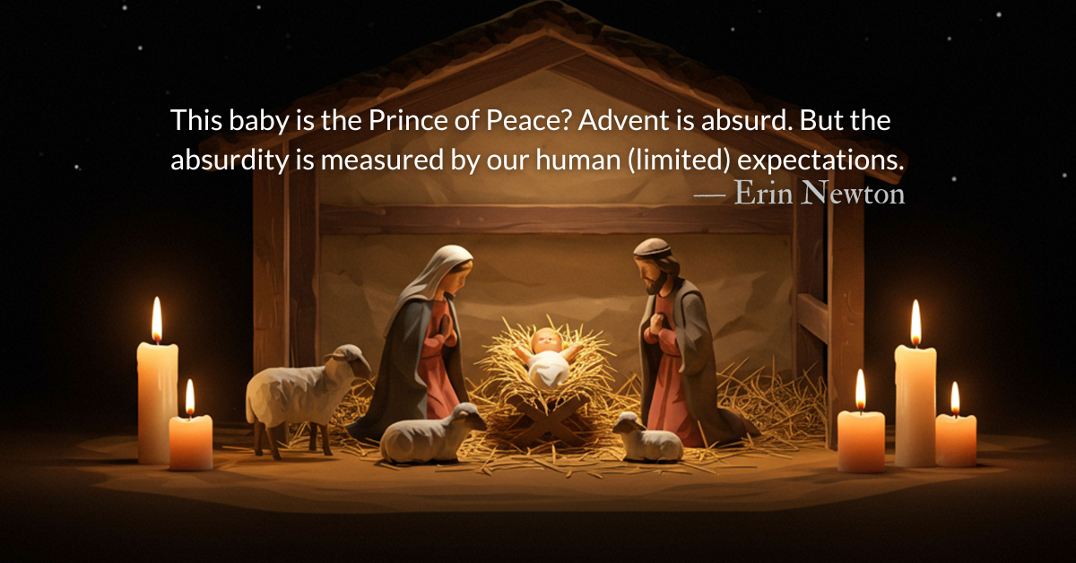 But Advent is absurd. It is unthinkable that a God of infinite power would limit himself by taking on flesh or that a baby would rule nations. But the absurdity is measured by our human (limited) expectations.