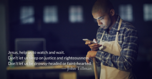Scripture Focus: Mark 13.3737 What I say to you, I say to everyone: “Watch!” Reflection: WatchBy John Tillman Jesus follows the model of many apocalyptic prophecies from the Torah; he speaks about two things at once. Biblical prophecies often directly describe something happening soon and figuratively describe something in the future. Revelation, written by John, … Continue reading Watch