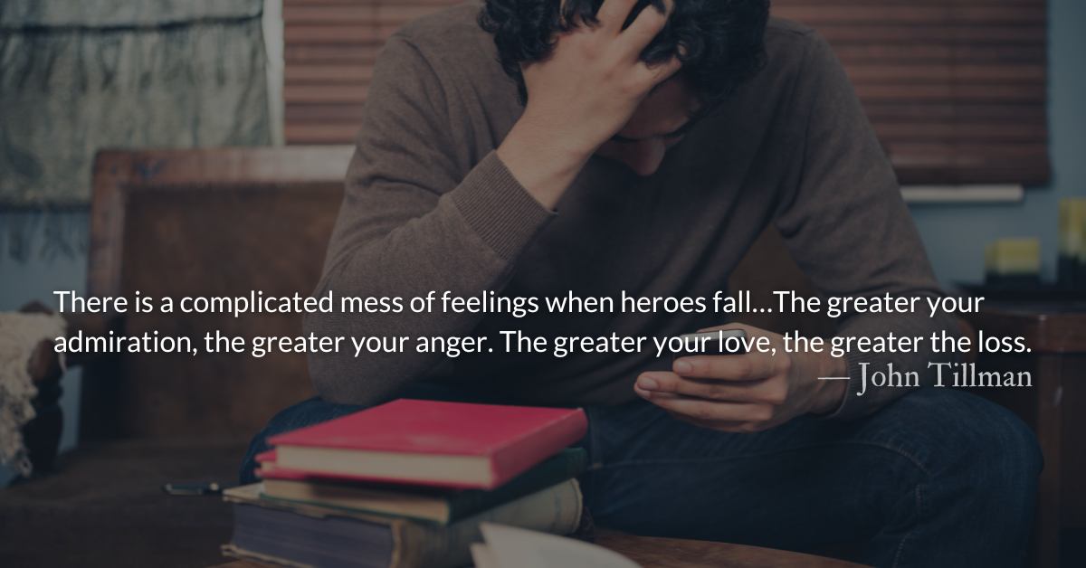 When a hero falls, whether slowly or suddenly, don’t allow yourself to soften the truth with nostalgic lies. Face the truth. Feel the pain of their sins. Acknowledge the damage they caused. Face both realities—the good and the bad. Hate what is evil but cling to what is good. Don’t defend what is evil with what was good. Most of all, humble yourself and remember that if they fell, so could you.